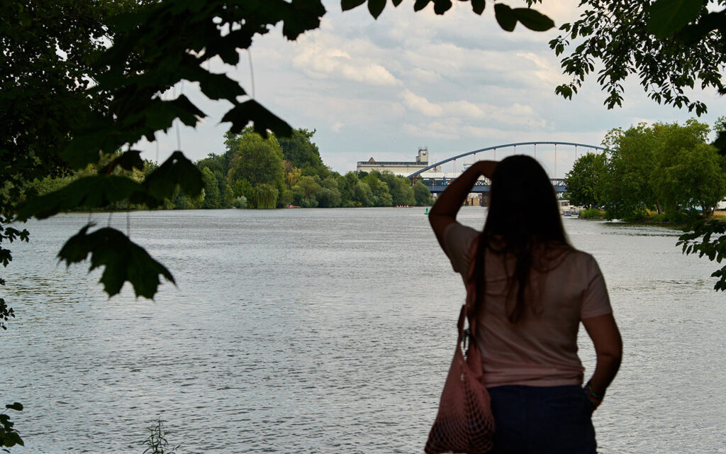 Wichtiger Ausgangspunkt war, sich auf wenige, sparsame Eingriffe in die vorhandene Situation zu beschränken, den historischen Bezug aufzunehmen und den Blick für reizvolle Blickbeziehungen zu schärfen. Denn man kann an diesem besonderen Ort bereits jetzt weite Blicke mainabwärts in Richtung Schloss Philippsruhe und mainaufwärts in Richtung Hafen genießen. Diese vorhandenen Qualitäten sollen betont und durch bessere Aufenthaltsmöglichkeiten erschlossen werden. Der Balkon besteht aus zwei ineinander geschobenen Terrassendecks, die durch eine Mauer aus Cortenstahl markiert sind. So kann man direkt am Wasser sitzen, Schiffe beobachten, angeln und nicht nur die Füße im Wasser, sondern auch die Seele baumeln lassen.