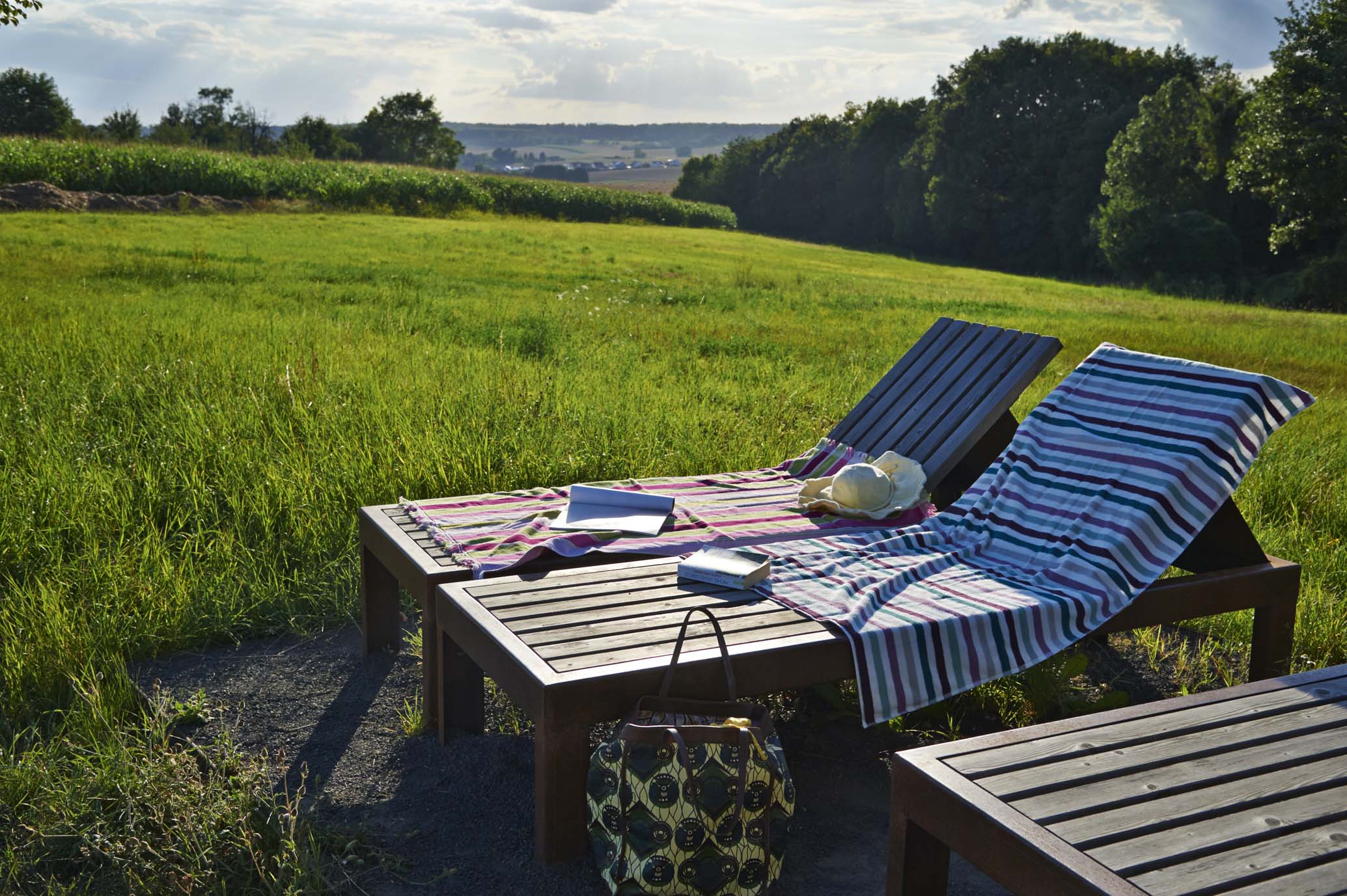 Die Tafel – ist ein etwa fünf Meter langer Tisch am Wegesrand, der samt den dazugehörigen Stühlen auf einer Landschaftsterrasse errichtet wurde. Das Ensemble wird von Apfelbäumen eingefasst. Attraktionspunkt Nummer zwei sind vier Liegen, die einige hundert Meter weiter auf der so genannten „Sonnenterrasse“ aufgestellt worden sind. Von dort öffnet sich ein schöner Ausblick auf den Spessart.