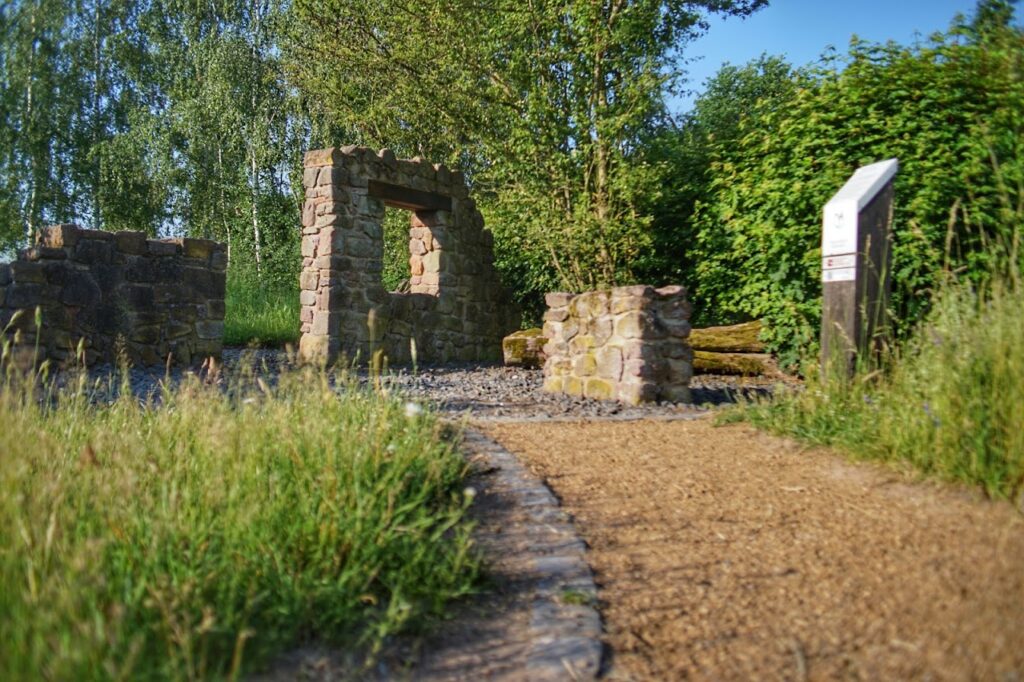 Geschichte? Ist doch langweilig, denken viele. Wie es anders und kurzweilig geht, zeigt der im Jahr 2000 fertiggestellte Dietzenbacher Geschichtspfad unweit der „Russenhütte“. Sieben durchgestaltete Stationen stellen ausgesuchte Daten im Werden von „Dicenbah“ vor. Beispielhaft etwa die Gründungszeit um 1220: Ein aufbrechendes Ei aus dunkelgrauem Diabas symbolisiert den Ursprung.