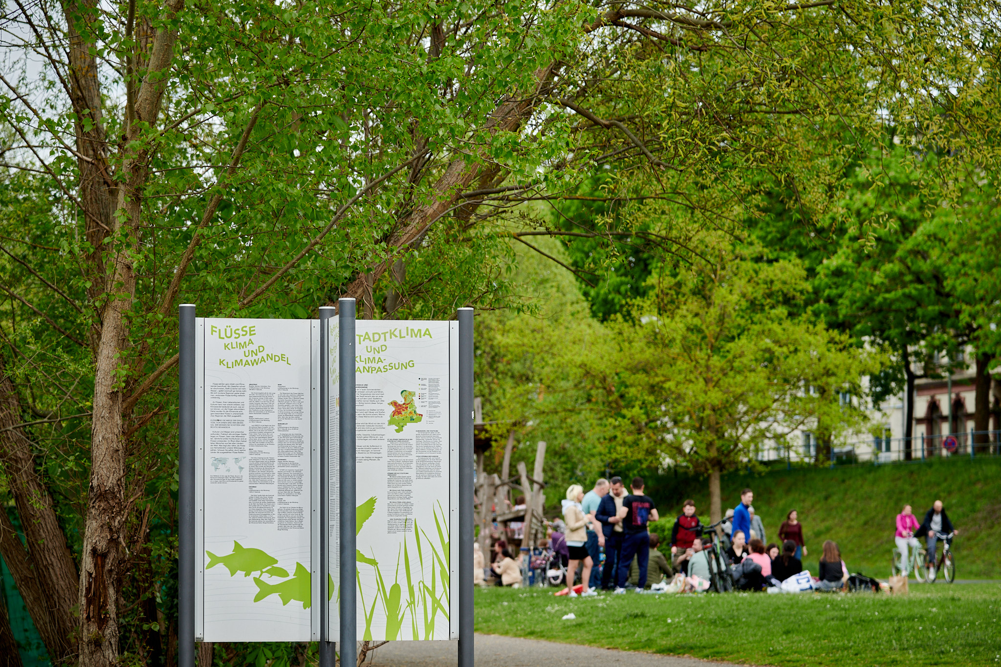 Städte leiden stärker unter sommerlicher Hitze als ihr Umland. Gebäude, Straßen und Plätze heizen sich tagsüber auf und geben ihre Wärme nachts wieder ab. Der Klimawandel verstärkt dieses Problem. Der Main wirkt dem als Frischluftschneise entgegen. Er ist Ausgangspunkt und Fokus der Klimaroute.