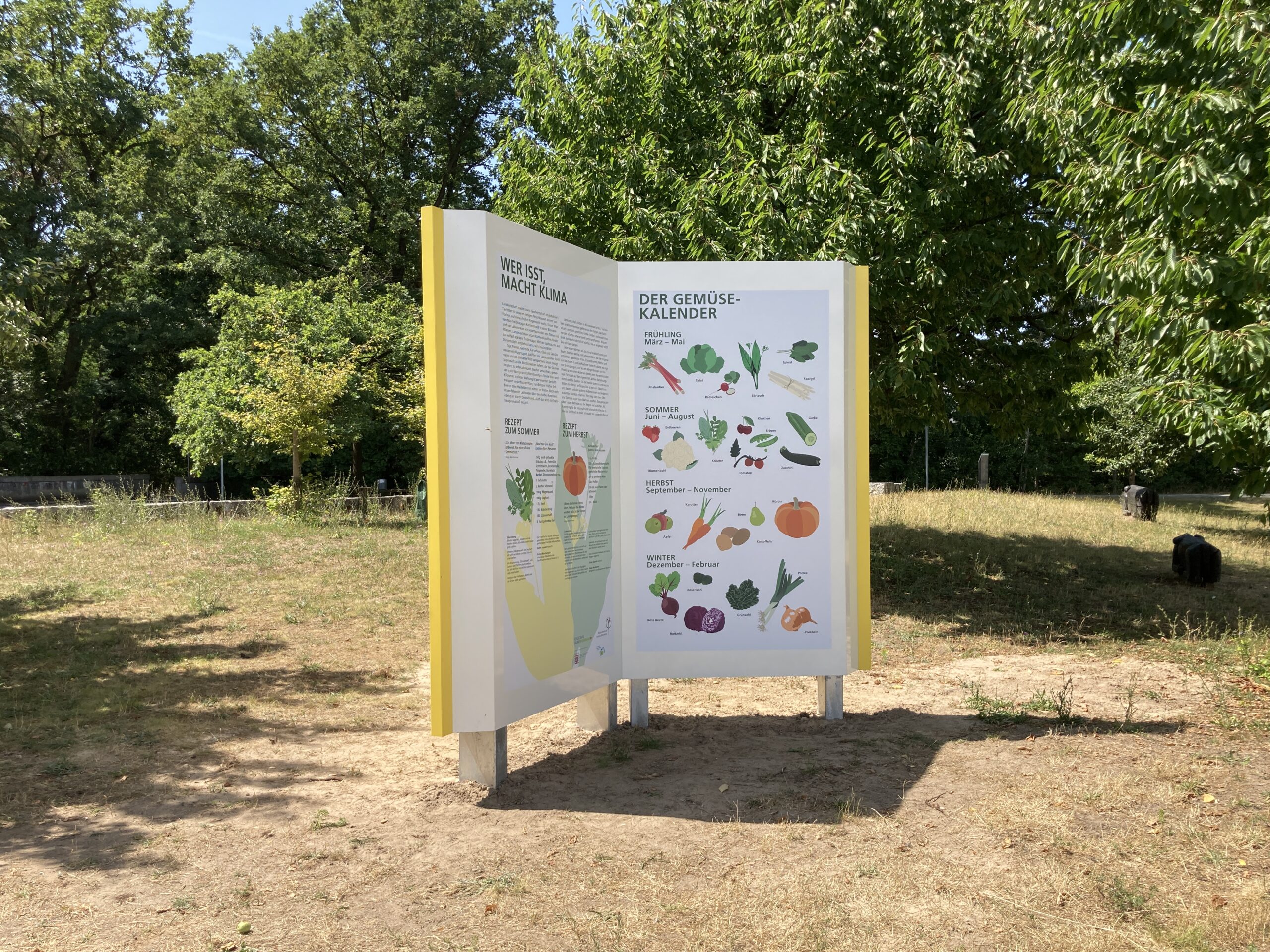 Jetzt sofort können wir das Klima bereits schonen: mit Essen, das hier wächst, mit Lebensmitteln, die hier entstehen. Landwirtinnen und Landwirte, eine Imkerei, eine Schnapsbrennerei, ein Fischereibetrieb und ein Brauteam in und um Nauheim bieten Produkte aus eigener Erzeugung an. Auf kurzen Wegen bringen sie ihre Produkte von einem Acker wie diesem, vom Bienenstock oder vom Fischteich auf den eigenen Hof. Woher die Nahrungsmittel und die Zutaten für die Destille kommen und welche Blüten die Bienen anfliegen: Das ist von den Bäuerinnen und Bauern und den anderen Anbieterinnen und Anbietern aus erster Hand zu erfahren. Wer mag, kann dem Obst und Gemüse sogar beim Wachsen zusehen. Das ganze Jahr über haben Betriebe aus der Region viel zu bieten. Als Anregung für die regionale und saisonale Küche gibt es hier im Kochbuch in jeder Jahreszeit ein passendes Rezept.
