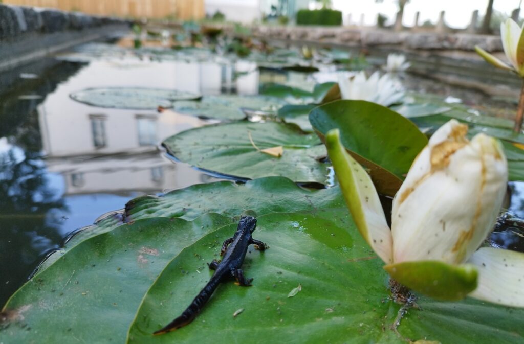Seerosenbecken und Nymphenbrunnen in den Grünanlage Opelvillen