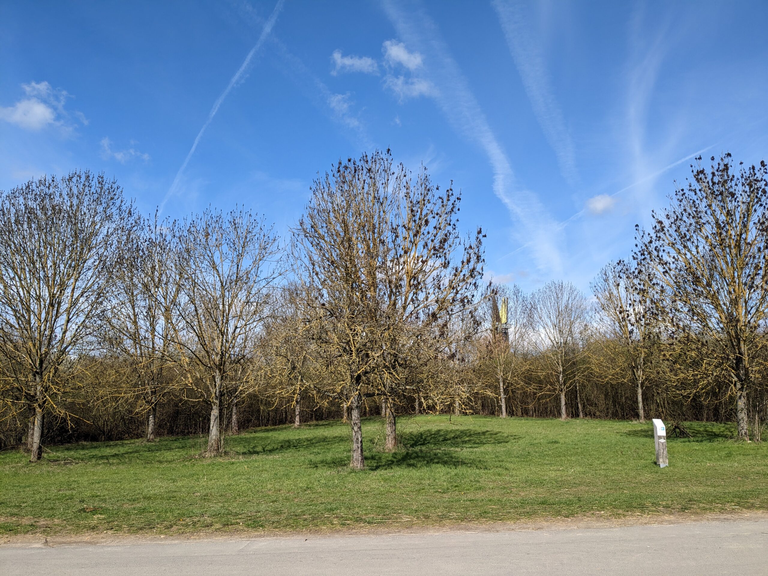 Frühjahr 1995: Anläßlich der Gründung der ersten Regionalpark RheinMain GmbH durch den Umlandverband Frankfurt, die Mainstädte Hattersheim, Flörsheim, Hochheim und die Gesellschaft zur Rekultivierung der Kiesgrubenlandschaft Weilbach (GRKW) wurden 20 Eschen gepflanzt. Sie stehen für die Idee der Vernetzung und Aufwertung der „ Regionalen Grünzüge“ hin zu einem für die Menschen sinnlich erlebbaren „ Regionalpark RheinMain“. Der in Form eines Dreiecks gepflanzte Eschenhain symbolisiert die drei Ziele der Gesellschaft: Naherholung, Naturschutz und Landschaftsentwicklung. Auch die drei Städte, auf deren Grund der Park als Pilotprojekt verwirklicht wird, finden sich in der Triangel wieder: Hattersheim, Flörsheim und Hochheim.