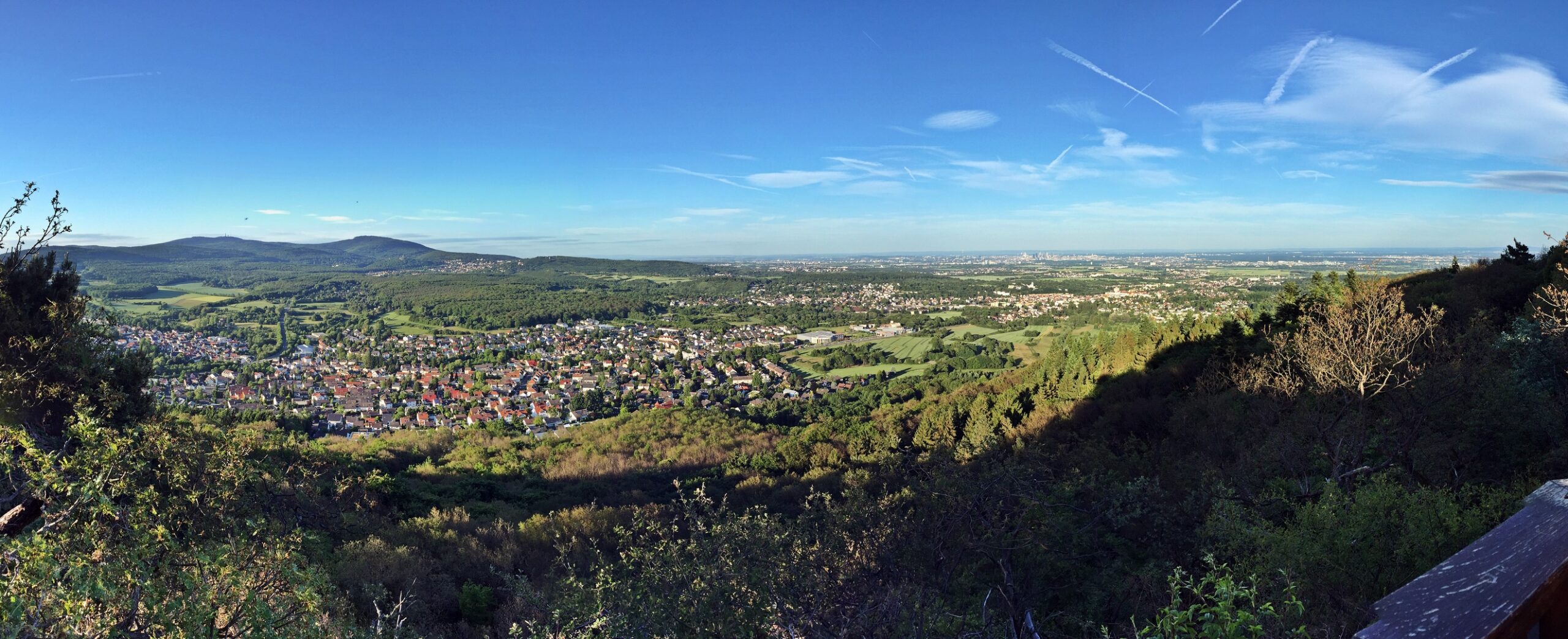 Von den Klippen des Großen Mannsteins östlich des Gipfels des Staufens, auch als Skyline Blick bezeichnet, kann man den wunderbaren Blick auf den Vordertaunus Richtung Feldberg und auf die Mainebene mit Skyline genießen. Bei klarem Wetter sind selbst die Höhenzüge von Spessart und Odenwald deutlich am Horizont erkennbar.