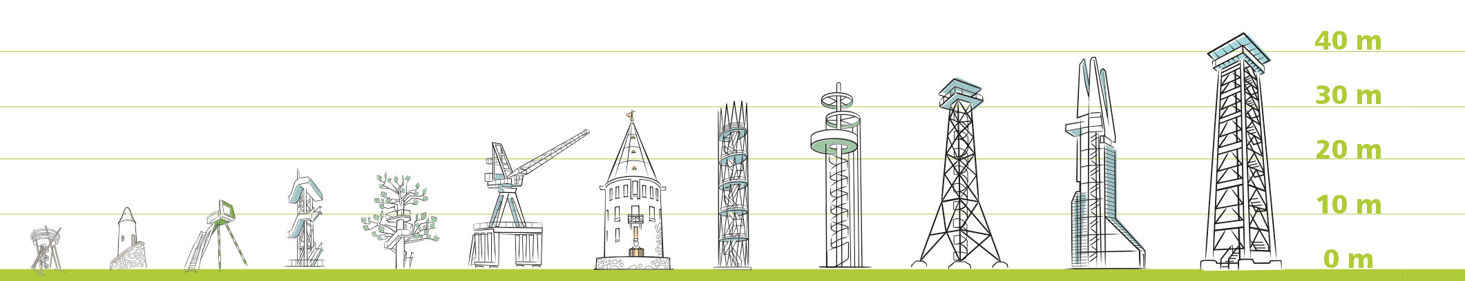 Und oft sind die Türme selbst eine Besichtigung wert. Ob von nah und fern, sie sind charakteristische Punkte in der Landschaft und dienen damit auch der Orientierung. Wenn sie historischen Ursprungs sind, wie die Flörsheimer Warte, oder gestalterisch originell wie das Vogelnest in Hochheim, der Turm „Ballett der Bewegung“ in Dietzenbach oder der Eisenbaum in Flörsheim dann werden sie zu Identität stiftenden Landmarken.