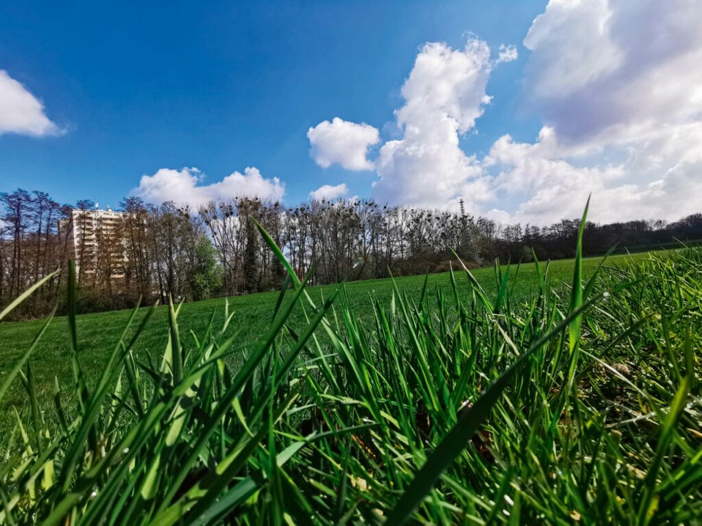 Die lange Wiese zwischen Fluss und Fabrik