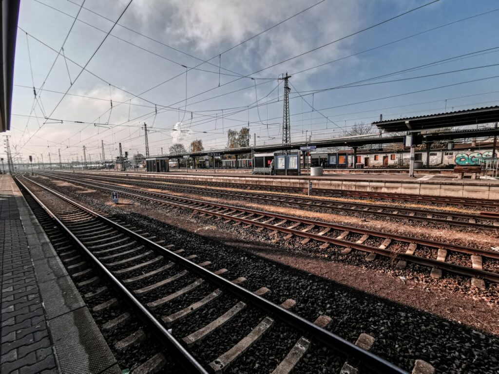 Ich starte am Hanauer Hauptbahnhof und gehe, am Arbeitsamt vorbei, auf kürzestem Weg auf den Friedhof, wo ich das Ehrenfeld für die Opfer des zweiten Weltkriegs besichtige. „Hanau war mit über 87 Prozent Zerstörungsgrad eine der meistgetroffenen Kommunen des zweiten Weltkriegs und steht in einer Reihe mit Brest, Coventry, Dresden, Frankfurt, Guernica, Hamburg, Rotterdam und Warschau.“ Eine interessante Städtereihe, denke ich und lassen den Blick über die Namen der rund 2000 Bombentoten schweifen, die hier am 19. März 1945 umgekommen sind. Die Kriegszerstörung zählt zu den epischen Narrativen der Stadt, also zu jenen Erzählungen, die einen Ort und sein Selbstverständnis für Jahrzehnte, wenn nicht Jahrhunderte prägen, deren Bilder sich tief ins Gedächtnis seiner BewohnerInnen eingeprägt haben und ohne die ein Ort nur schwer bis gar nicht zu verstehen ist. Dass der Friedhof gleich neben dem Bahnhof liegt, liegt daran, dass der Hanauer Hauptbahnhof abseits der Innenstadt liegt. Ursprünglich hieß er Ostbahnhof (der heutige Westbahnhof war der Hauptbahnhof) und war Sackbahnhof der Bahnstrecke nach Bebra. Mit dem Bau weiterer Bahntrassen und ihrer fortschreitenden Vernetzung wurde der alte Ostbahnhof zu einem wichtigen Eisenbahnknotenpunkt und 1927 zum Hauptbahnhof ernannt.