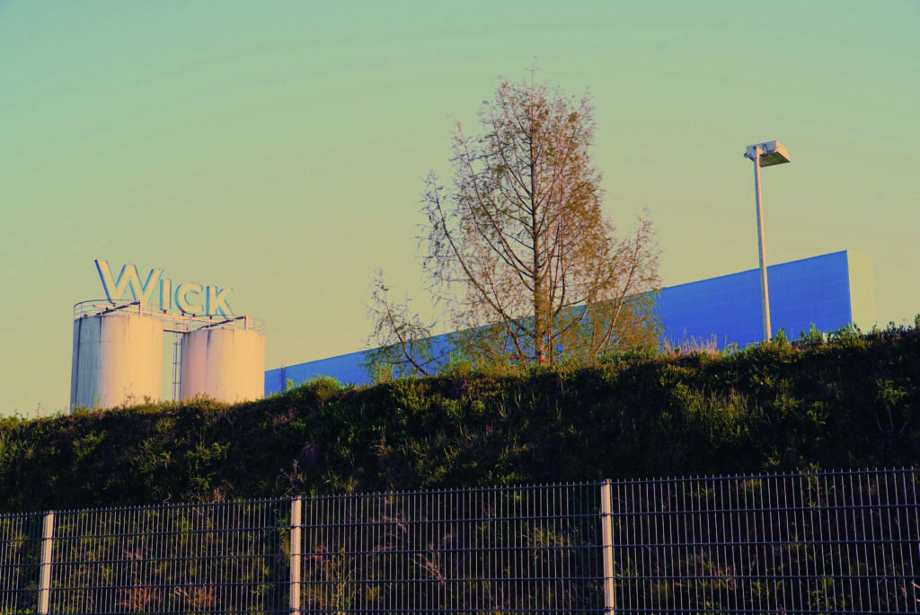 Das Hochlager von Procter & Gamble ist ein großer Riegelbau, der leuchtend blau an der Autobahn A67 signalisiert ‚hier ist Groß-Gerau’. Der von weither sichtbare Bau kann als Landmarke für die Region bezeichnet werden und wird von vielen Menschen ‚Wick-Gebäude‘ genannt. Die Fassadenfläche bietet die Möglichkeit, den Orientierungspunkt zu einem Markenzeichen der Kreisstadt Groß-Gerau weit über die Region hinaus werden zu lassen.