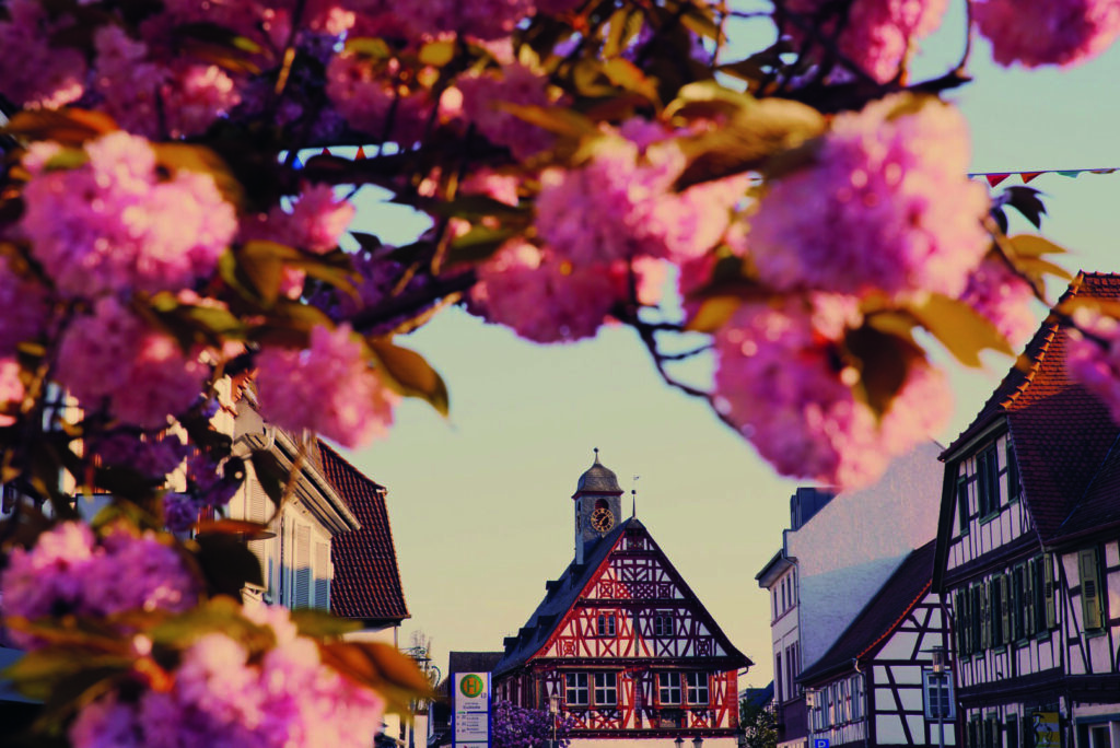 … denn wer hier noch nicht wieder in die Bahn steigt, sondern weiter geht, lernt auch ein „schmuckes“ Groß-Gerau kennen, mit eindrucksvollem Fachwerkbestand, verwinkelten Gassen und einem erstaunlich gut ablesbaren, historischen Stadtgrundriss. Gleichzeitig ist es eine „Sparkassenstadt“, also eine jener ländlichen Kleinstädte, in denen einem der Gedanke kommen kann, der ganze Ort wäre um seine Sparkasse (und seine Volksbank) herum gebaut worden. Im Entwicklungsplan Groß-Gerau 2020 finde ich folgende Passage: „Die Bürger finden Groß-Gerau eher sauber, gepflegt, gemütlich und sicher. Allerdings sind sie auch der Meinung, dass Groß-Gerau eher eintönig, langweilig, provinziell und verschlafen ist.“ Ich bin erstaunt über die ungeschminkte Selbsteinschätzung, habe aber auch den Eindruck, dass sich seit der Erstellung des Plans etwas getan hat. Oder ist alles nur Fassade? Zu meinen Lieblingssequenzen beim Gang durch die Groß-Gerauer Altstadt zählen jedenfalls die Schönecken(!)straße mit ihrer dichten Räumlichkeit, das daran anschließende Riesengässchen und der kleine Platz „Am Sandböhl“ mit Eiscafé (Sparkassenstädte sind oft auch Eiscaféstädte); Auf der breiten Frankfurter Straße lerne ich, dass dort früher die Kaufleute auf dem Weg zur Frankfurter Messe ihre Fuhrwerke für die Rast parken konnten; „Am Burggraben“ komme ich an einem der eindrucksvollsten Fachwerkbauten vorbei, die ich je gesehen habe: Die marode, aber noch aufrecht stehende Scheune vor Hausnummer 5a sieht aus wie ein Präparat aus Gunther von Hagens Körperwelten.