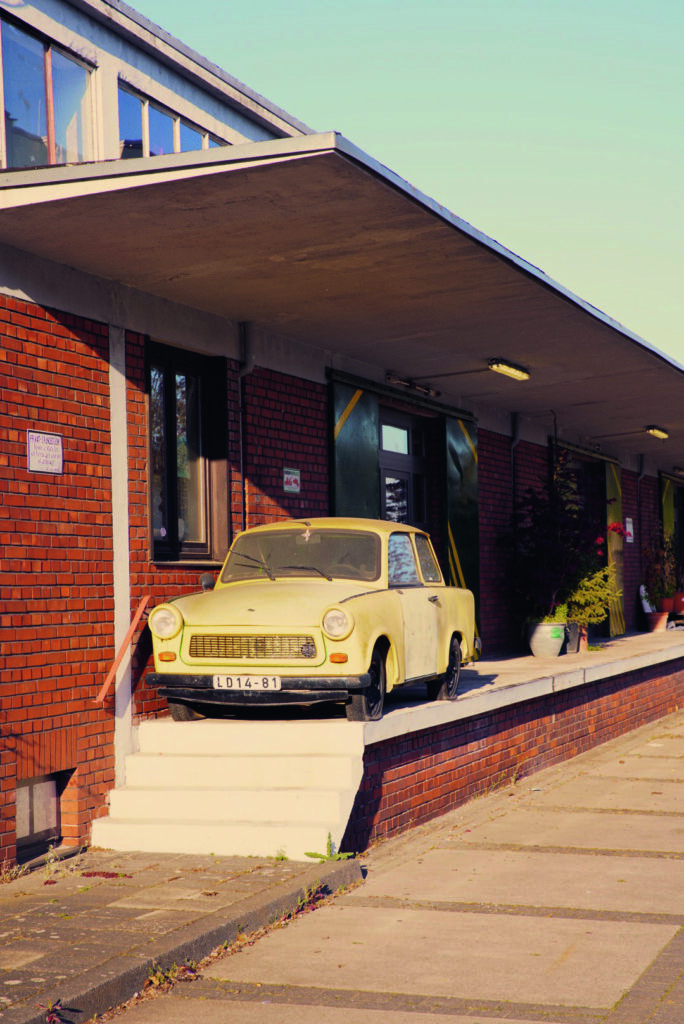 Ich folge den Fußwegen und Trampelpfaden der Arbeiter des Industriegebiets bis zum Bahnhof Groß-Gerau. Das 50er-Jahre-Kleinod beherbergt gleich drei Gastronomien: In der eleganten Empfangshalle hat sich ein Tapas Restaurant eingerichtet. Der Saal im benachbarten, niedrigeren Anbau ist von zwei Seiten zugänglich: Dabei betritt man zwar denselben Raum, landet aber einmal in einer Kneipe und das andere Mal in einem Kiosk – bedient wird man in beiden von der gleichen Wirtin!